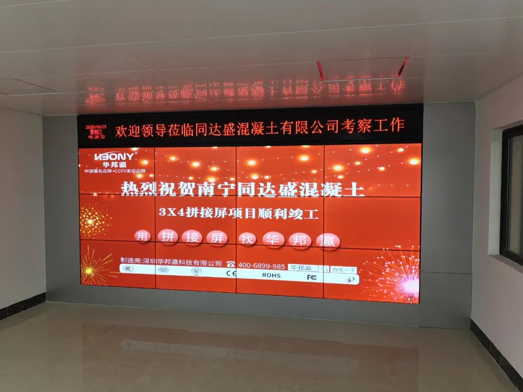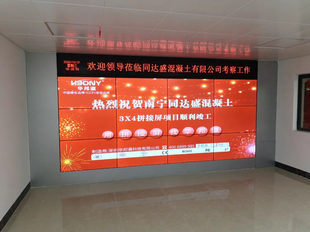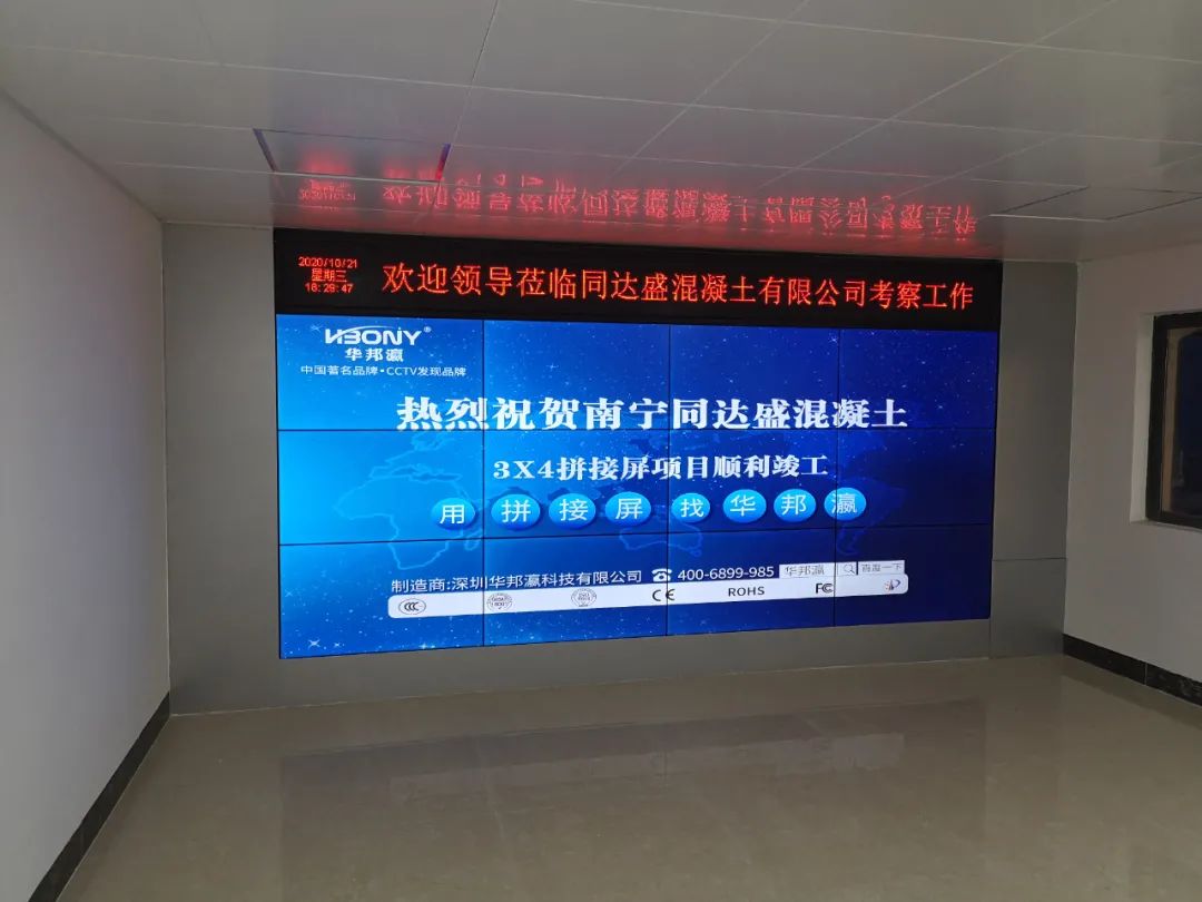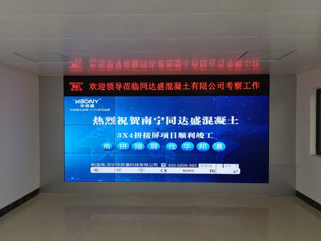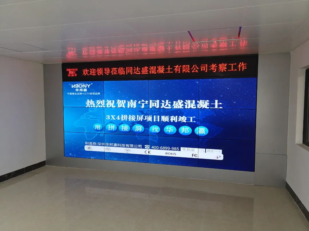 近日,南寧同達(dá)盛混凝土有限公司引進(jìn)華邦瀛液晶拼接屏作為內(nèi)部展廳的終端大屏幕顯示設(shè)備,在提升企業(yè)軟實(shí)力的同時(shí),也為了更好地向來(lái)往公司考察的客戶、合作伙伴等介紹相關(guān)的混凝土工程項(xiàng)目案例,展示企業(yè)綜合實(shí)力等,促進(jìn)公司的進(jìn)一步發(fā)展,樹(shù)立一個(gè)全新的企業(yè)形象。